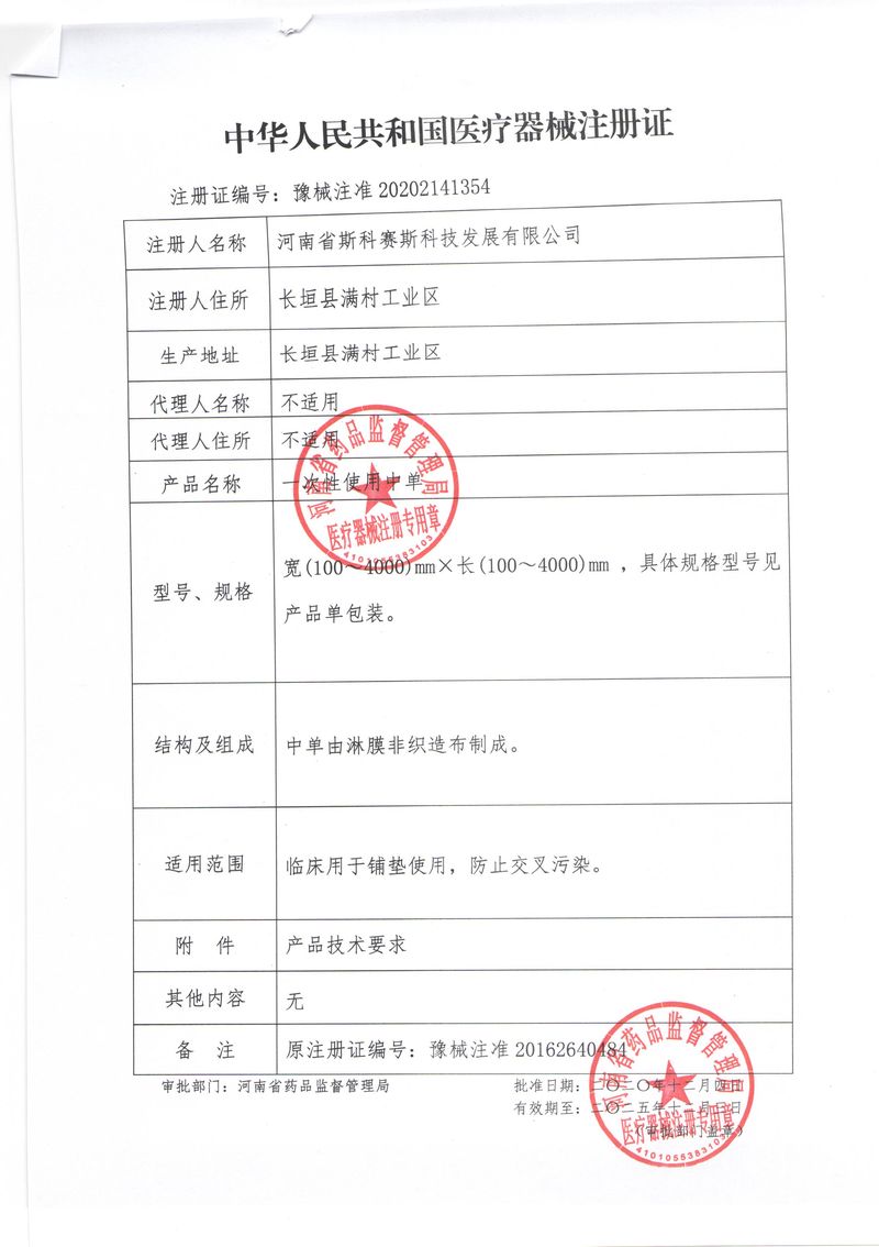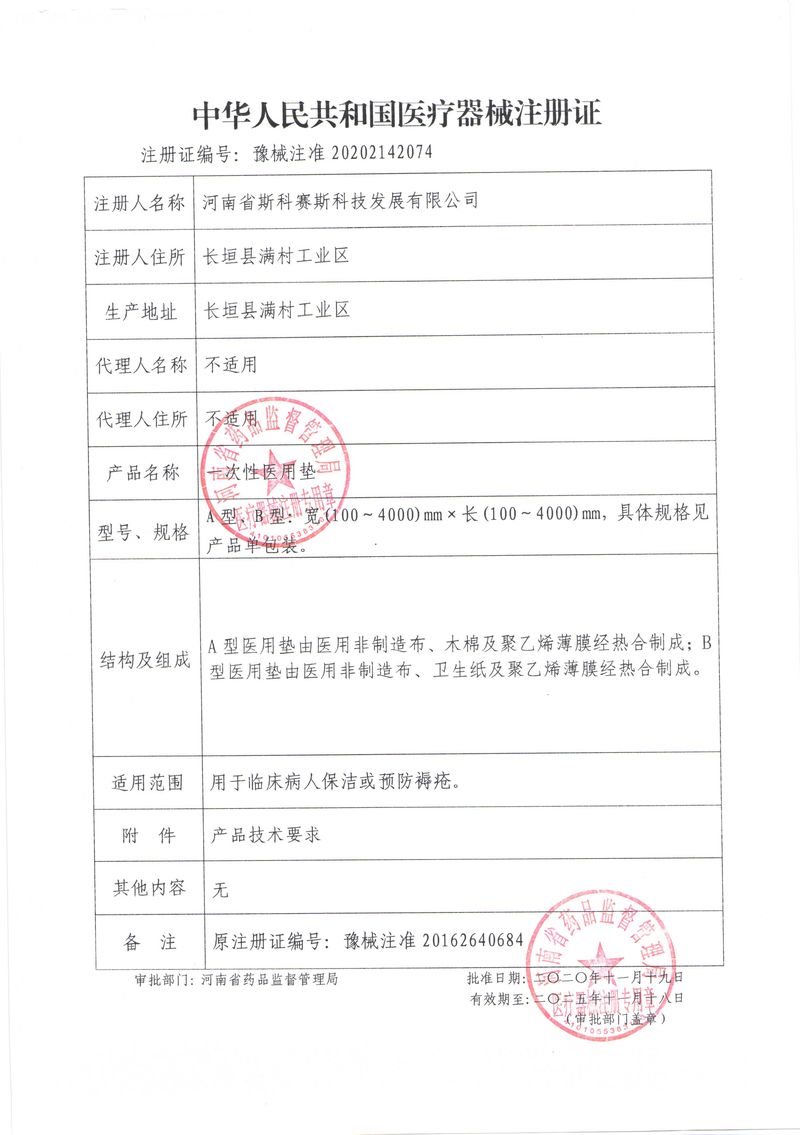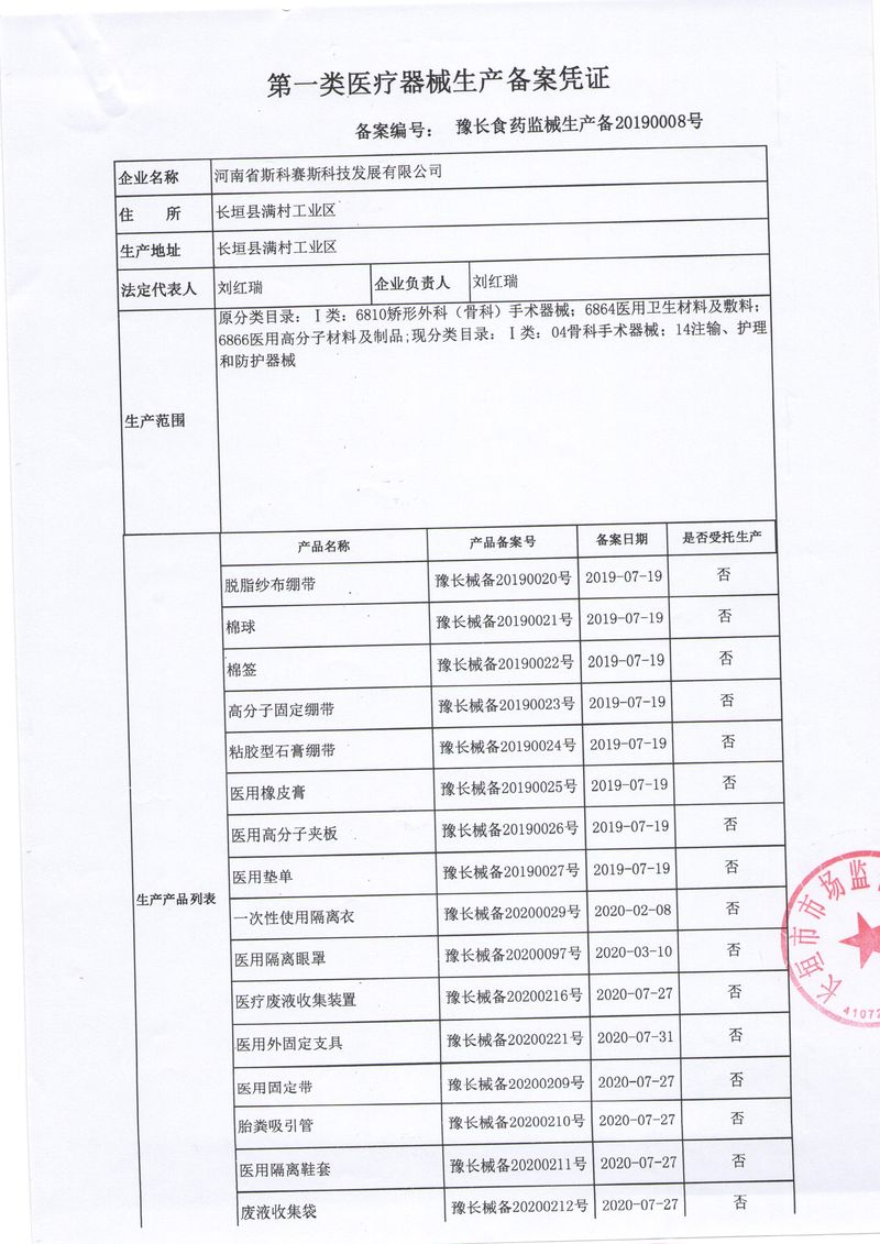 河南省斯科賽斯科技發(fā)展有限公司創(chuàng)建于 2011 年,位于“中國醫(yī)療耗材之都”- 河南省長垣縣,西臨 308 省道,南靠新菏鐵路,北依長濟高速,交通便捷,經(jīng)濟發(fā)達,環(huán)境優(yōu)美。斯科賽斯積極進入醫(yī)療健康和服務(wù)領(lǐng)域,秉承為用戶創(chuàng)造價值的理念,專注于醫(yī)用耗材解決方案的研發(fā)和運營,并為用戶提供完善的產(chǎn)品解決方案;  斯科賽斯主要生產(chǎn)醫(yī)用麻醉系列、醫(yī)用高分子系列、醫(yī)用敷料包系列、醫(yī)用無紡布系列、醫(yī)用防護系列、醫(yī)用脫脂棉系列、生物材料制品類等七大類、100 多個品種、400 多個規(guī)格的產(chǎn)品。公司占地面積約 30000 平方米,建筑面積20000 平方米,擁有 10 萬級的凈化車間總面積 10000 平方米。擁有國際先進水平的生產(chǎn)設(shè)備和檢測儀器,技術(shù)裝備精良,檢測手段完善,為醫(yī)療行業(yè)的不斷發(fā)展進步提供保障。公司順利通過 ISO9001、ISO13485 質(zhì)量管理體系認證。  斯科賽斯堅持研發(fā)高科技新產(chǎn)品,力爭在醫(yī)療器械關(guān)鍵領(lǐng)域取得技術(shù)和研發(fā)的重大突破;立足國內(nèi)和國際兩個市場,逐步實現(xiàn)管理理念、經(jīng)營機制、人力資源、技術(shù)、產(chǎn)品、市場等全方位對接,提高企業(yè)的核心競爭力;過去的歲月里,斯科賽斯砥礪前行,誠信務(wù)實,銳意進取,不斷創(chuàng)新,用自己的睿智和辛勞,以富有責(zé)任感的使命,在探索中追求,在追求中超越,致力于成為值得信賴的醫(yī)療用品生產(chǎn)企業(yè)!在未來的日子里,斯科賽斯將一如既往豪情滿懷,信心百倍,攜手并肩,執(zhí)著追求,向更高的的目標前進,鑄造新的輝煌!